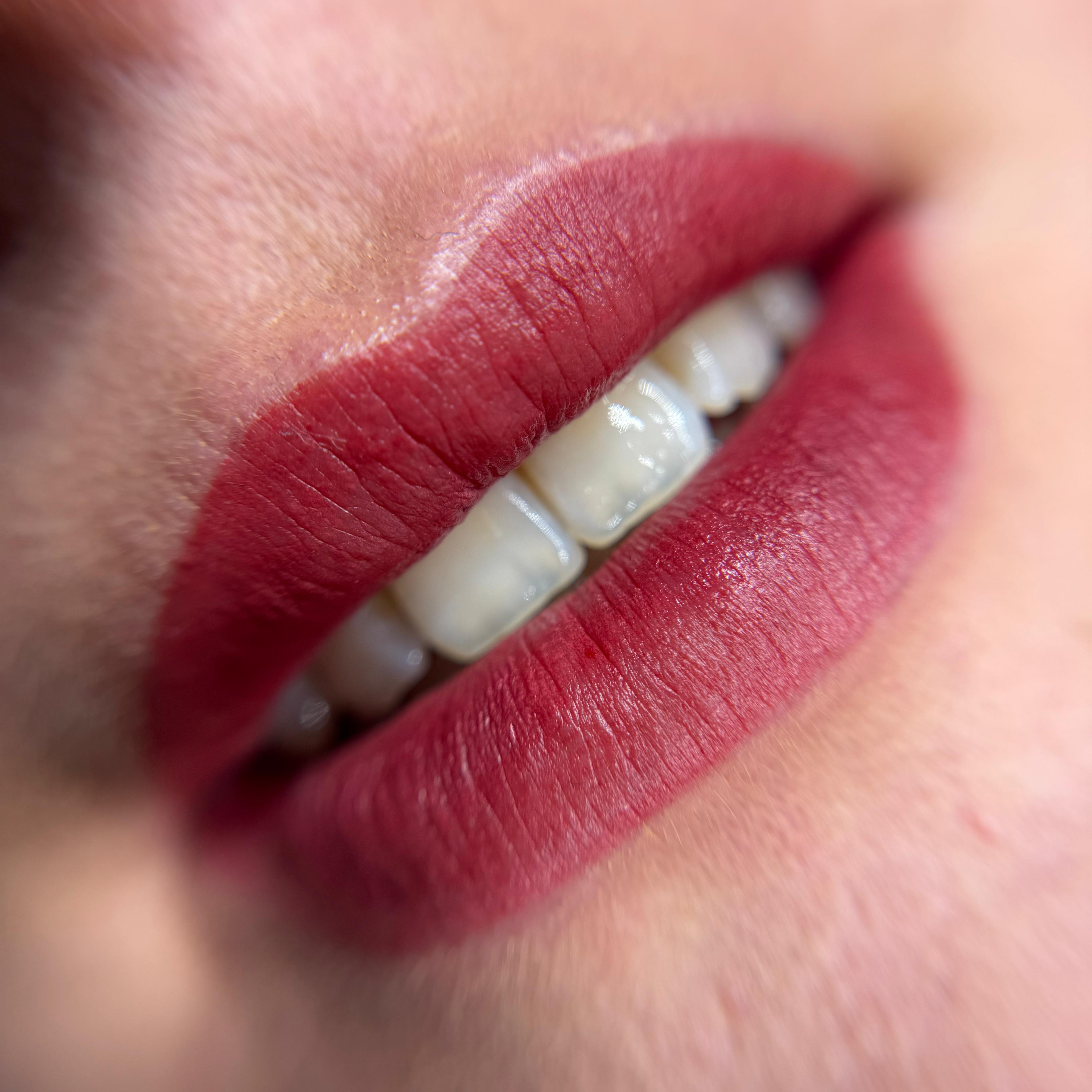 Realzamos el contorno y el color para que tus labios se vean más llenos, vivos y armoniosos sin que parezca maquillaje. Ideal si notas tus labios apagados o irregulares.